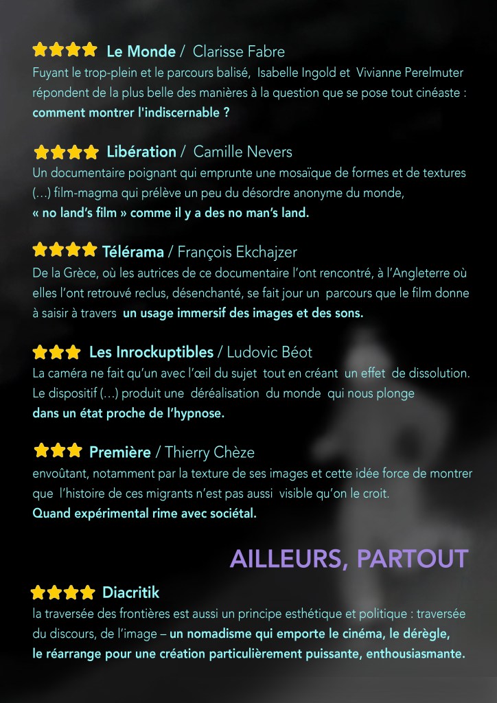 Une production Dérives En coproduction avec CBA -Centre audiovisuel à Bruxelles Produit avec l’aide du Centre du cinéma et de l’audiovisuel de la Fédération Wallonie Bruxelles et Du Service Public Francophone Bruxellois Avec le soutien de La Wallonie